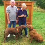 In late August 2020, Embossed Cordovan, better known as Cord (one of the famed Prineville 5 royalty) left his foster, Rebecca and his “almost” buddy Charles, the pug, to come and live with us and our third Chessie, Ruby, on our 13 acre property. It was well known by then that Cord was a “wanderer” and, oh, did he ever have places to wander! So much so that we put a bright orange collar on him to see him better when he was of on one of his rambles.