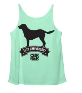 Every year, CBRR&R takes in dogs from a variety of situations who need our help. Some have medical issues, some behavioral issues, some have been surrendered to shelters, and some have lost a beloved family member and find themselves in need of a new home. Money raised through our various fundraising campaigns support these dogs. In celebration of our 20th anniversary, we are offering this special edition logo on a variety of shirt styles! We hope you’ll find one (or two…or three…) that you love.